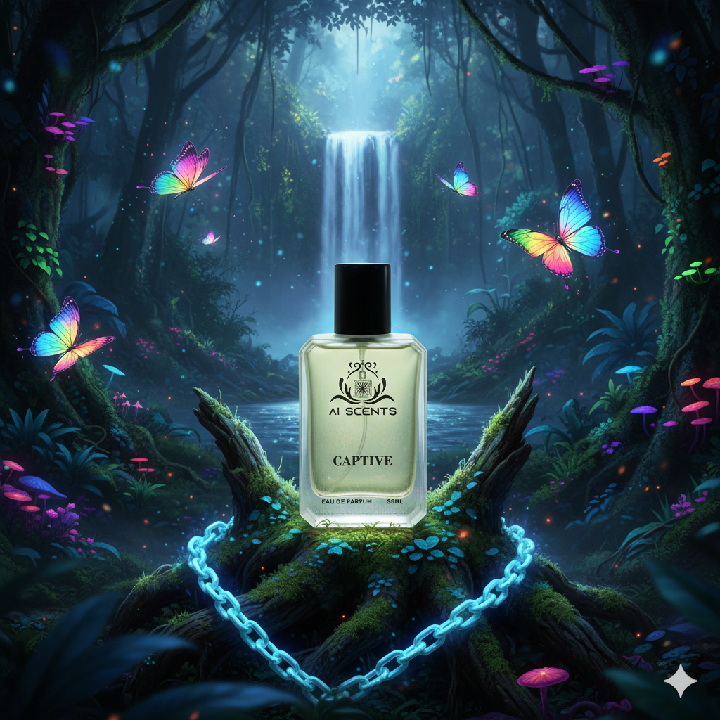 Captive by AI Scents is a rich and expressive Eau de Parfum created for women who embrace mystery and confidence. The fragrance opens with a dark, alluring introduction that immediately draws attention. As it develops, warm florals and smooth spicy nuances create a bold yet elegant heart. The base settles into creamy woods and soft musks, delivering a long-lasting finish that feels intense, feminine, and irresistibly captivating.